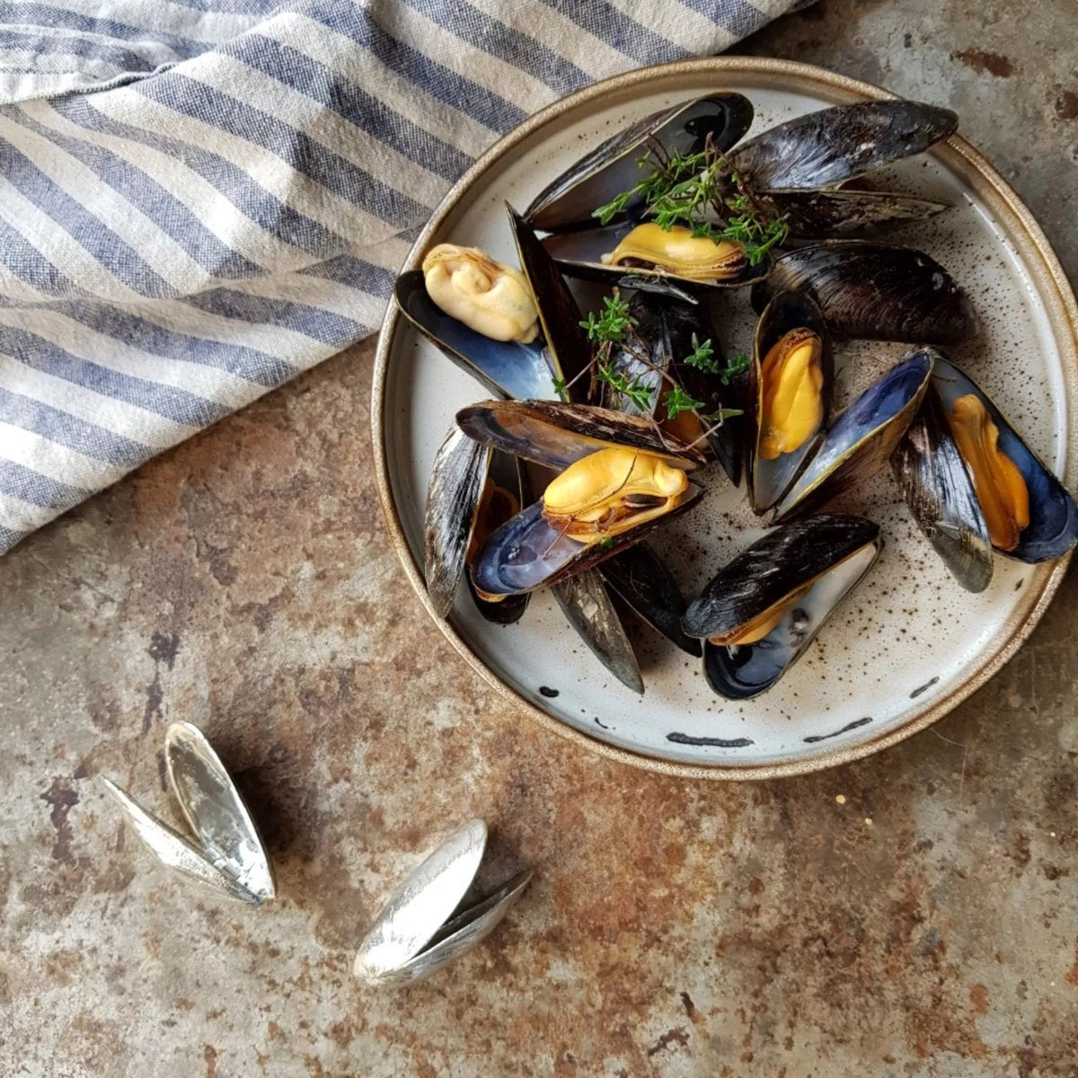 Het Zeeuws mosselbestek is ambachtelijk vervaardigd in Nederland en geïnspireerd door de natuurlijke vorm van mosselschelpen. Het speciale veermechanisme maakt het openen van mosselen eenvoudiger en aangenamer, terwijl de gepolijste zilvertin afwerking een luxueuze uitstraling geeft aan uw tafel.